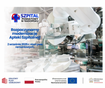 2 września 2025 r. rozpoczną się prace remontowe w Aptece Szpitalnej Szpitala Powiatowego w Radomsku…